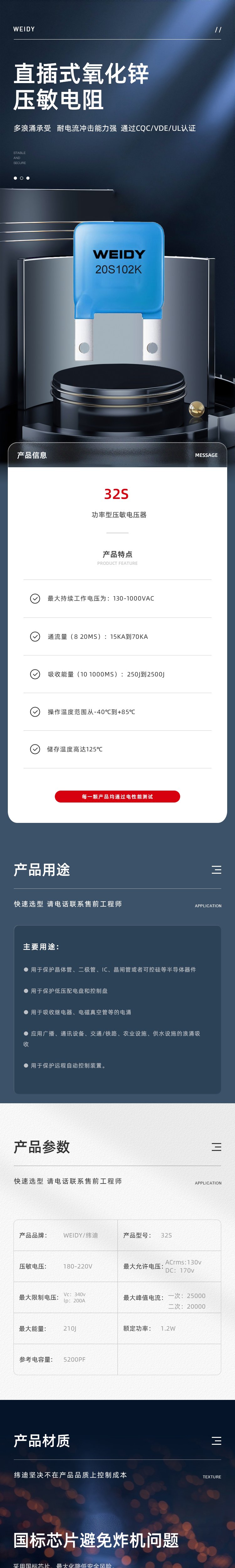 功率型压敏电压器 纬迪/WEIDY 32S直插压敏电阻 源头厂家规格齐全